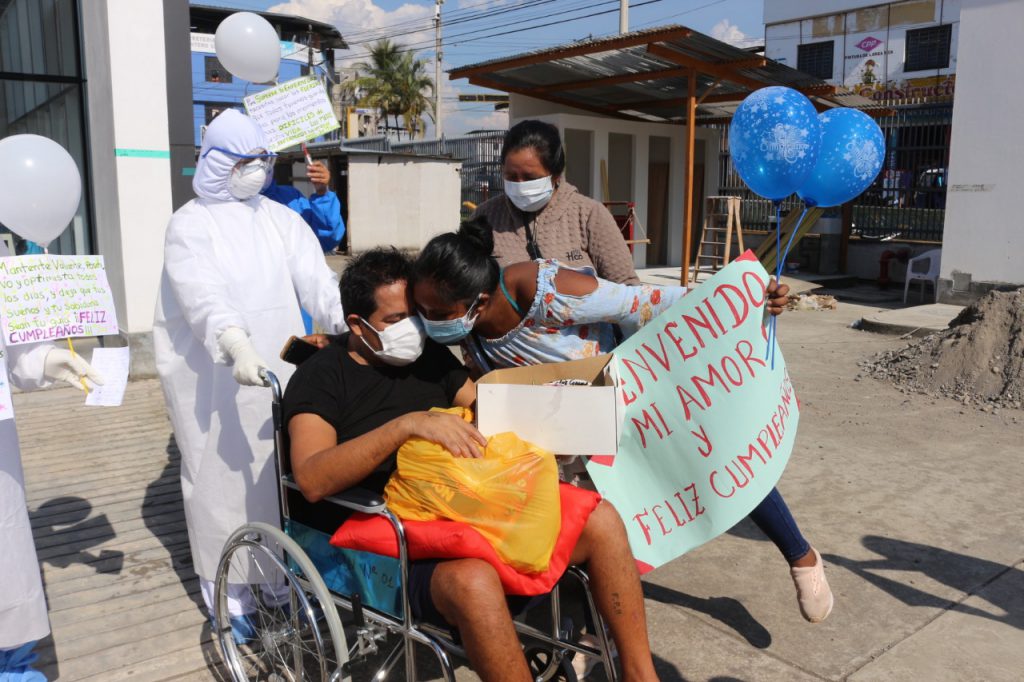 Le celebran cumpleaños en puerta de hospital a paciente que venció el COVID-19