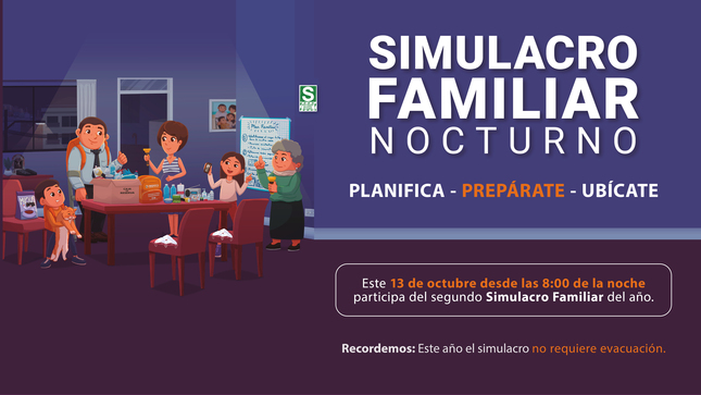 Simulacro Familiar Multipeligro sin salir de casa se realizará este 13 de octubre