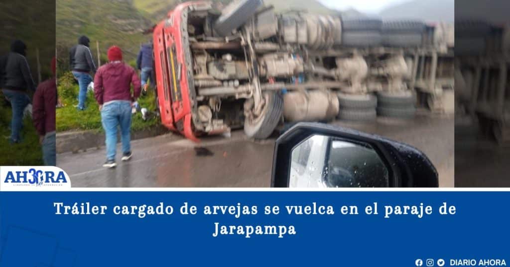 Tráiler cargado de arvejas se vuelca en el paraje de Jarapampa
