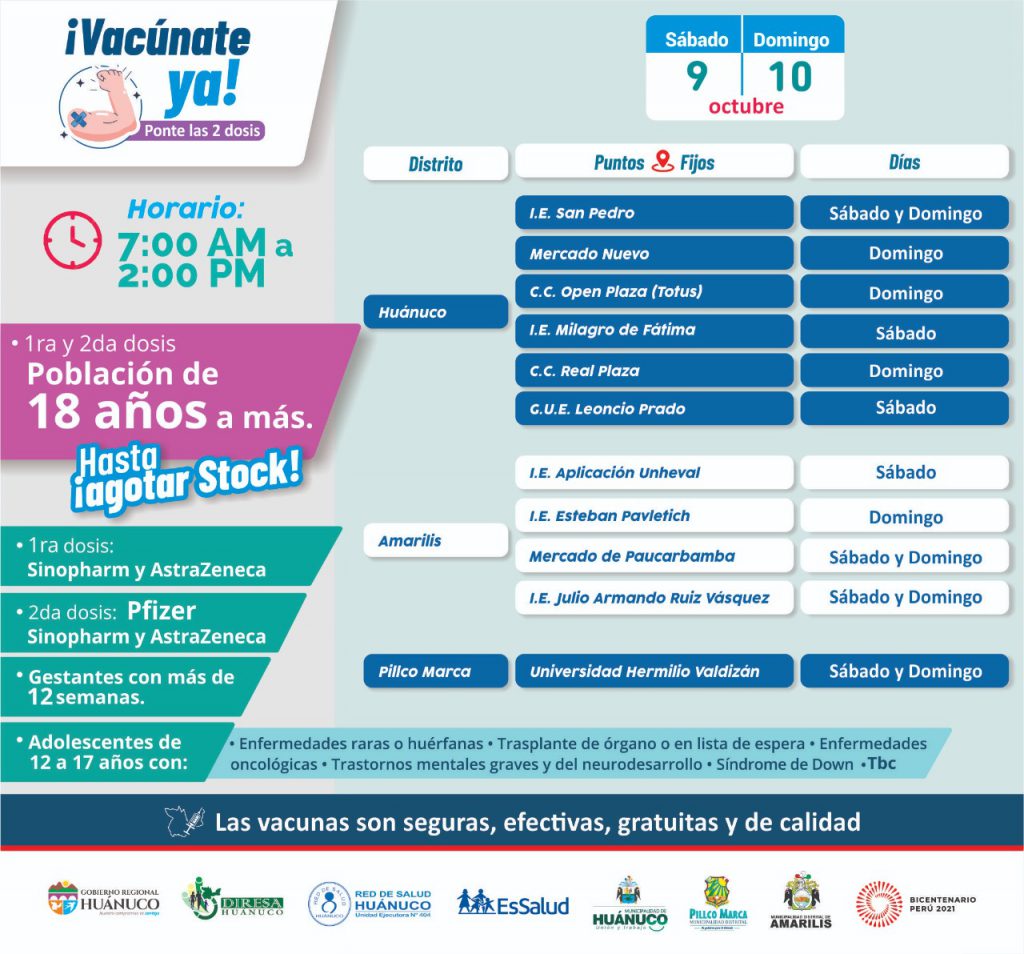 Para este fin de semana, las autoridades de salud de la región Huánuco despliegan una jornada masiva de vacunación para…