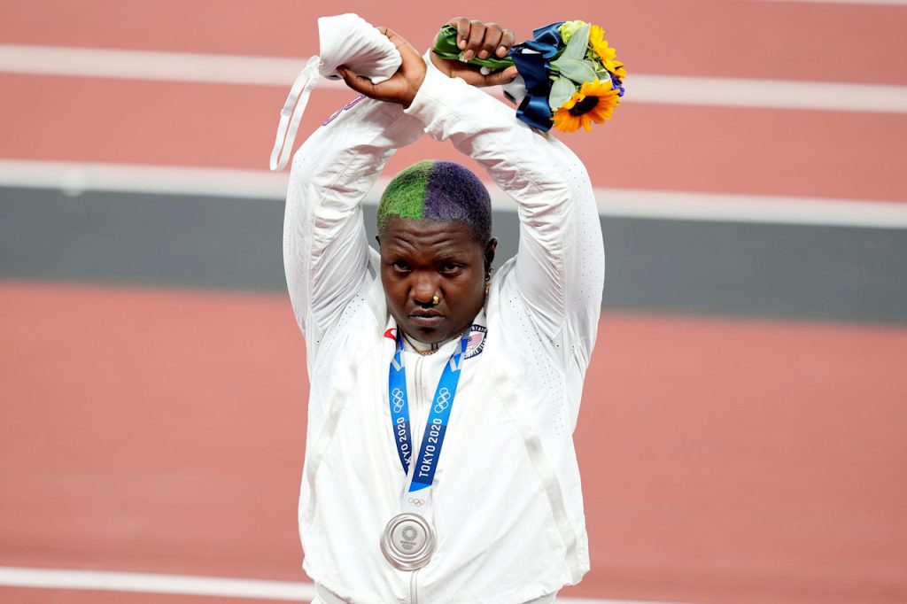 Tras recibir la medalla de plata, Raven Saunders cruzó los brazos por "todas las personas oprimidas". El COI prohíbe este…