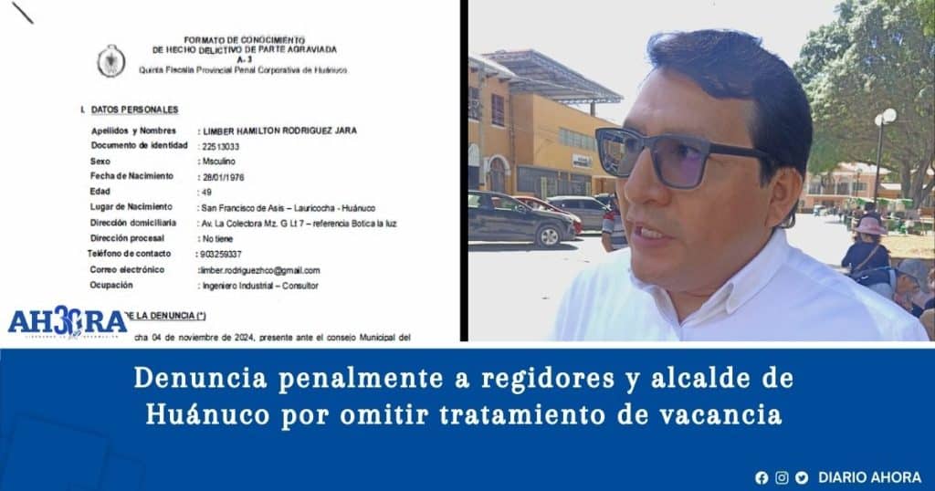 Denuncia penalmente a regidores y alcalde de Huánuco por omitir tratamiento de vacancia