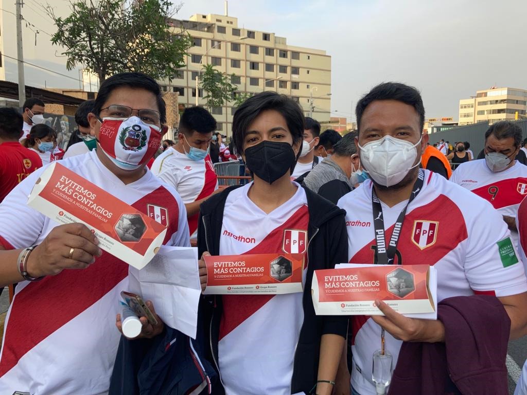 Asistentes al partido Perú-Ecuador recibieron mascarillas por parte de la Fundación Romero