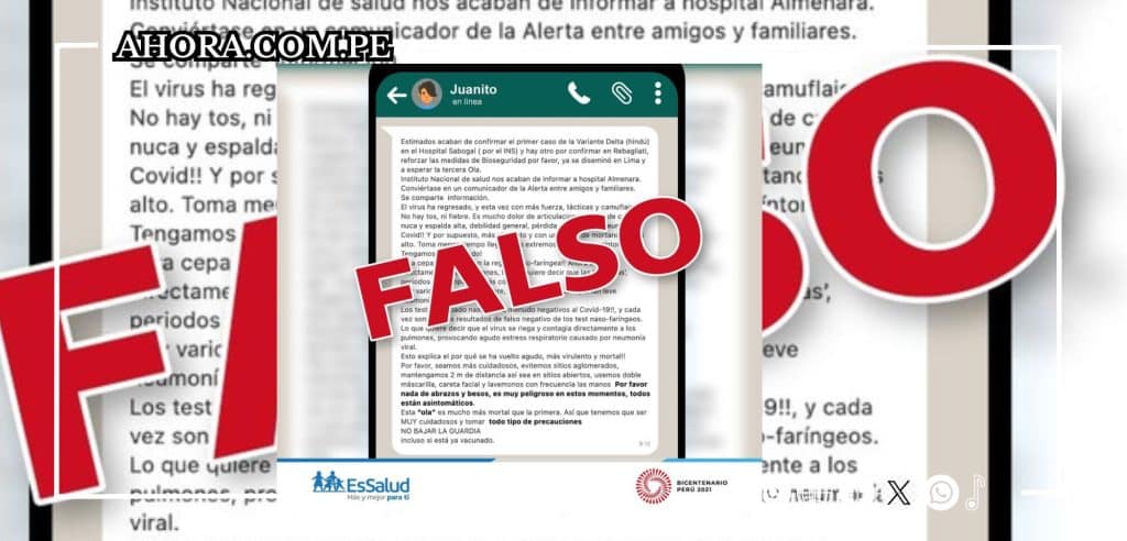 Minsa desmiente rumor de variante Delta en Hospital Sabogal