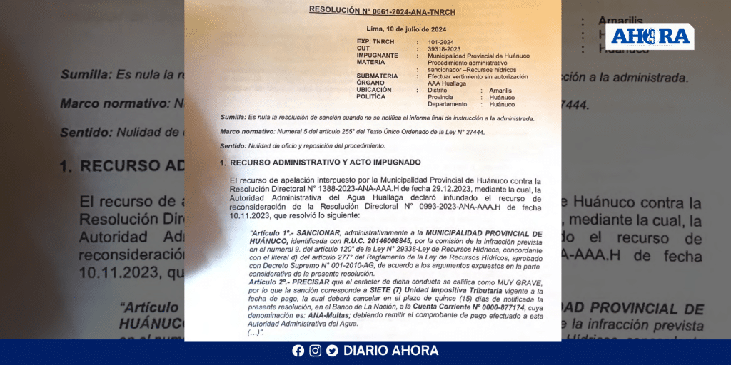 Municipalidad de Huánuco es sancionada por vertimientos no autorizados al río Huallaga