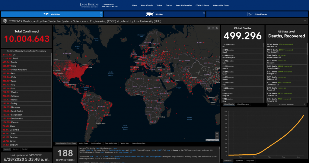 El mundo superó los 10 millones de casos de infección por el coronavirus SARS-CoV-2, confirmó este domingo la Universidad Johns…