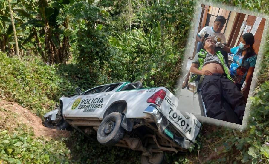 El S3 PNP Deivi Chumbe Fernández y el S1 PNP Frank Máximo Mancicidor Clauper resultaron heridos tras despistarse a bordo…