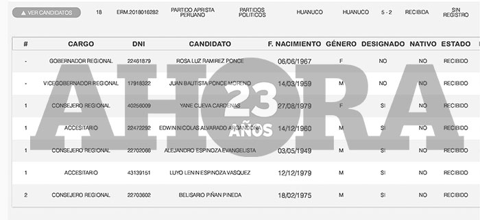 La pretendida postulación al Gobierno Regional de la lista de candidatos del Partido Aprista Peruano fue declarada Improcedente por el…