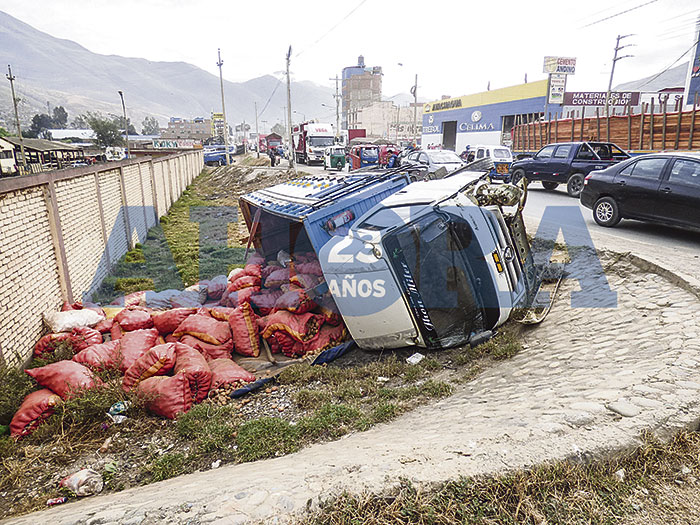 Un camión repleto de sacos de papa se despistó tras ser embestido por un tráiler que se dio a la…