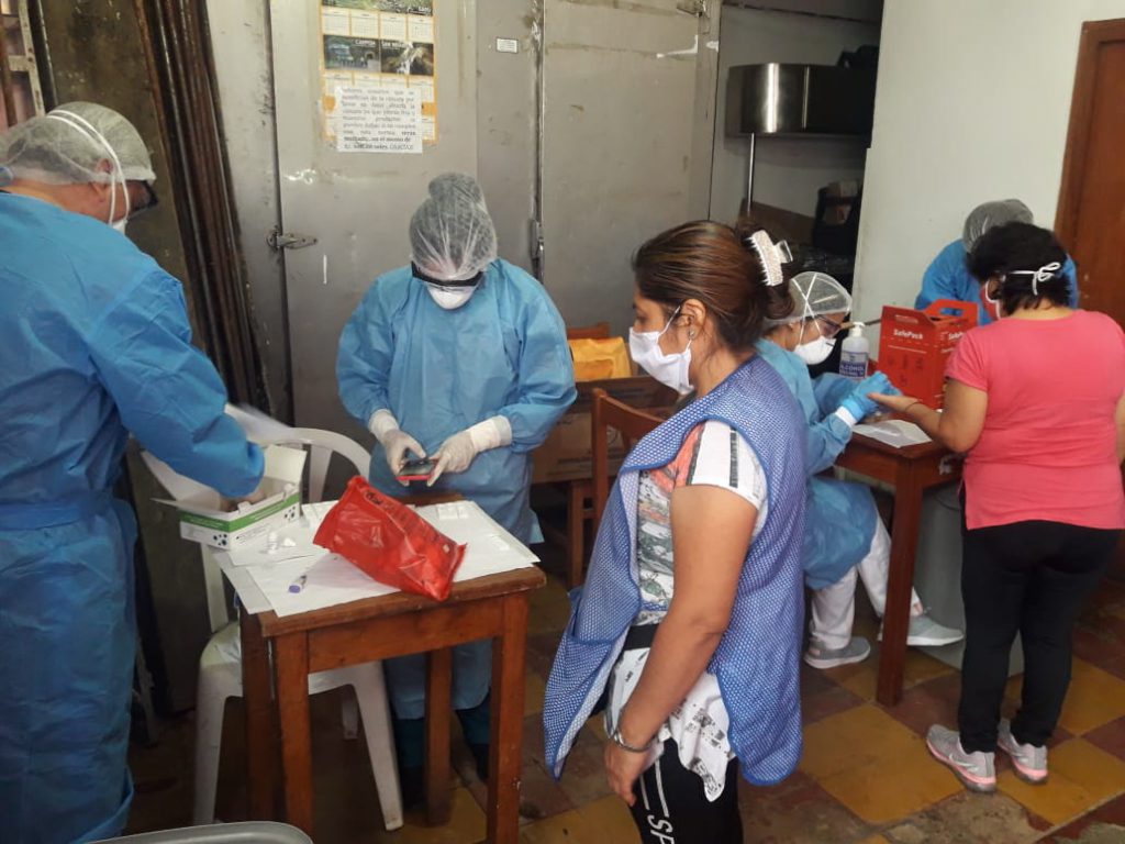 La Red de Salud de Huánuco viene aplicando pruebas rápidas a comerciantes del Mercado Modelo de Huánuco para descartar el…