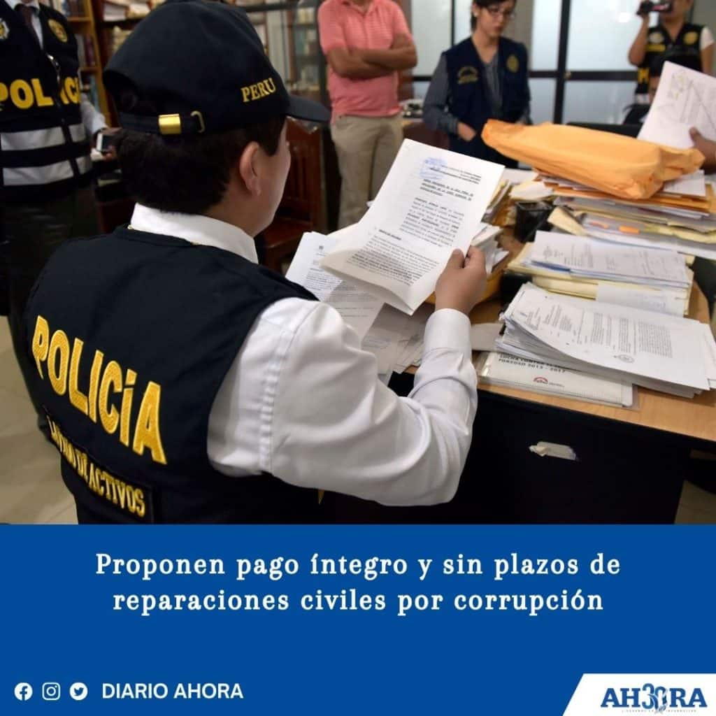 Proponen pago íntegro y sin plazos de reparaciones civiles por corrupción