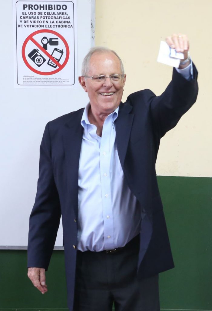 Fujimori 39.18 %, Kuczynski 24.25 % y Mendoza 16.57 %
