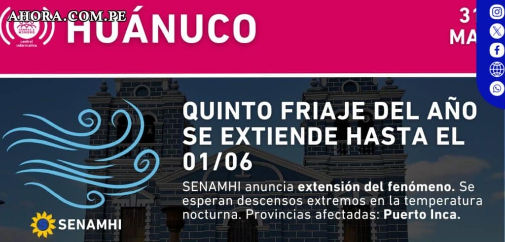 Descenso de temperaturas y ráfagas de viento afectan a Huánuco