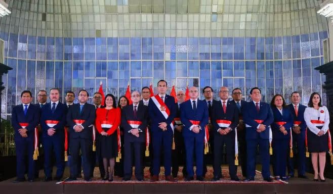 El presidente interino José Jerí Oré juramentó el 14 de octubre de 2025 a su primer gabinete ministerial, integrado por…