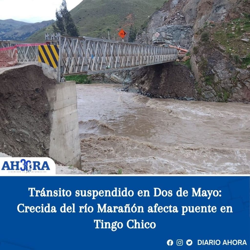 Tránsito suspendido en Dos de Mayo: Crecida del río Marañón afecta puente en Tingo Chico