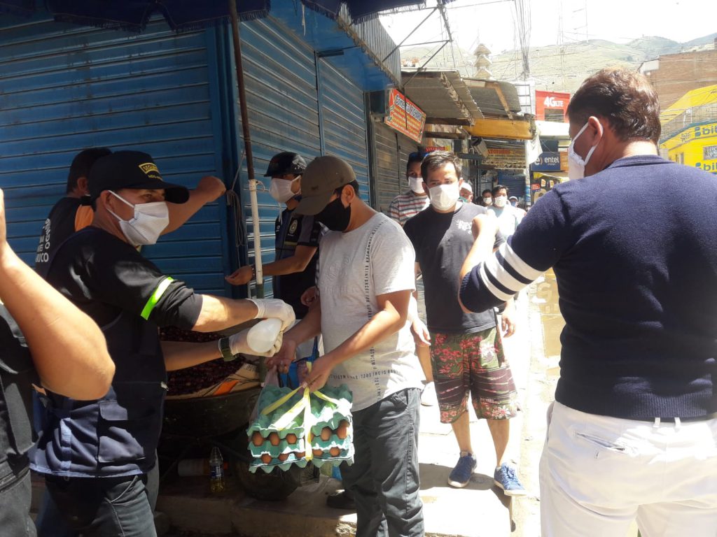 Desinfectan manos a varones para ingresar al Mercado Modelo de Huánuco
