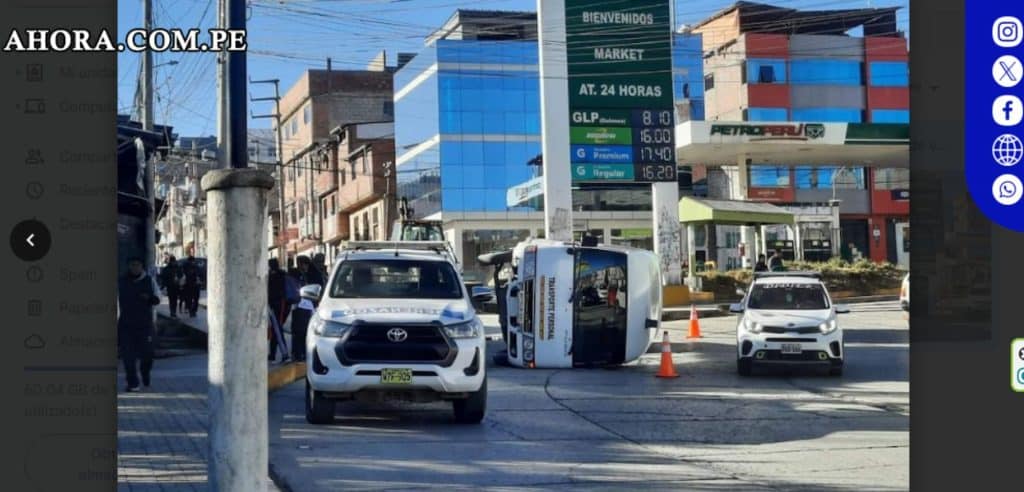 Vuelco de vehículo de transporte de personal en Yanacancha sin victimas