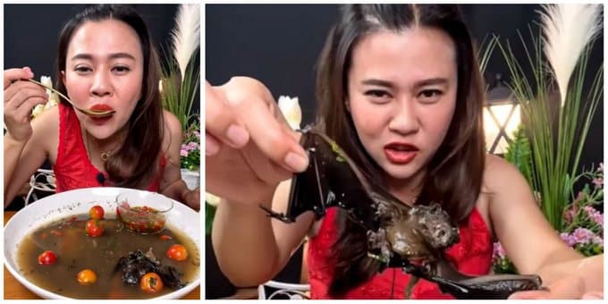 La grabación, de un minuto y 40 segundos, muestra a la influencer degustando una sopa que contiene tomates cherry y murciélagos. Rápidamente los usuarios salieron a criticarla, no solo por poner en riesgo su salud, sino por exponer a su comunidad a un nuevo virus como el SARS-CoV-2.