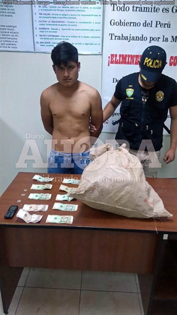 Al sujeto se le incautó un teléfono celular, además de 126 soles. En su defensa manifestó que el costal se lo encargó una persona a quien no conoce para entregarlo a otra persona del lugar.