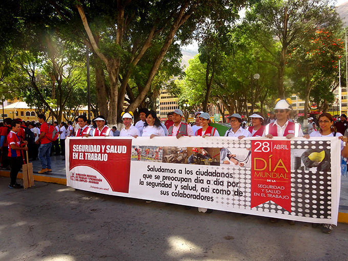 Con el fin de promover la prevención de los accidentes laborales y las enfermedades profesionales, ayer en el Día de la Seguridad y la Salud en el Trabajo, los trabajadores de Sunafil y de la Dirección Regional de Trabajo realizaron una marcha de sensibilización. Llamó la atención la tardía asistencia de los trabajadores de la Dirección Regional de Transportes que llegaron cuando acabó el evento.
