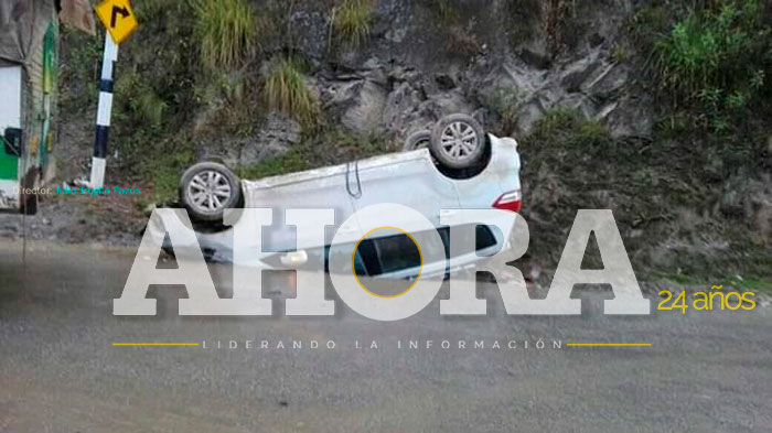 El accidente ocurrió ayer en horas de la mañana en la carretera hacia La Unión a la altura del puente Quipas, por causas que aún se investiga, el automóvil blanco conducido por Rudy Estacio Alvarado, trabajador de la municipalidad de Dos de Mayo, se despistó y terminó con las llantas hacia arriba a un costado de la vía.