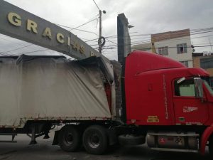Tráiler chocó y destruyó arco “La Identidad” de la Vía Colectora