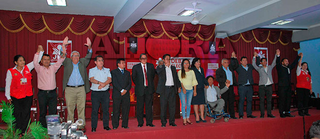 Fueron 13 los candidatos que expusieron sus propuestas en escasos 2 minutos para cada uno de los 3 ejes definidos por el JNE: el eje institucional, el eje social y el económico para el desarrollo de la región. Josué Gutiérrez de Solidaridad Nacional fue el único que faltó al debate y no justificó su ausencia.