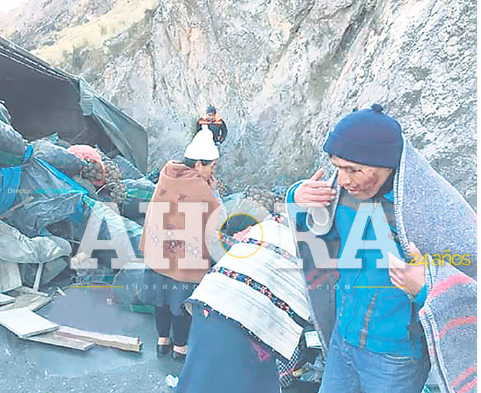 El chofer y los tres ocupantes, entre ellos 2 mujeres, resultaron con diversas heridas en el cuerpo, luego que el camión cargado de papas, con placa de rodaje Y1K-874, conducido por Gerciño Grijalva (40), volcara en la localidad San Miguel, en el distrito de Huariaca, Pasco.