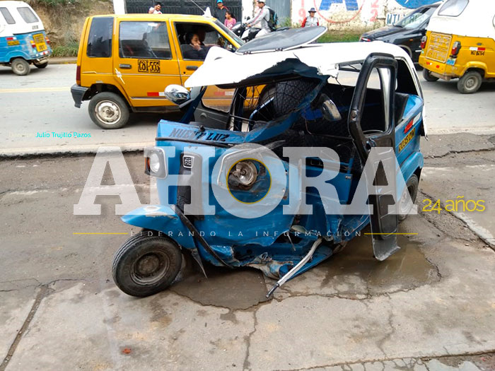 Un automóvil de placa de rodaje AEI-285 conducido por Cesar Tarazona Félix (28), una combi de placa de rodaje D2B-952, conducida por Alexander Espinoza Bravo (39), y el trimovil azul de placa 7035-2W, cuyo conductor era Heber Romero Riquelmo (32), colisionaron violentamente, felizmente sin dejar víctimas ni heridos.