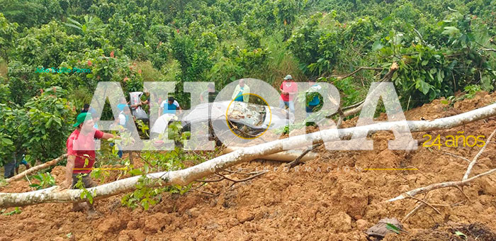 Policías apoyados por maquinaria pesada ayer retornaron al lugar de los deslizamientos para remover y limpiar los escombros y encontraron el cuerpo del padre de familia, natural de Juanjui, sepultado sobre una zanja.