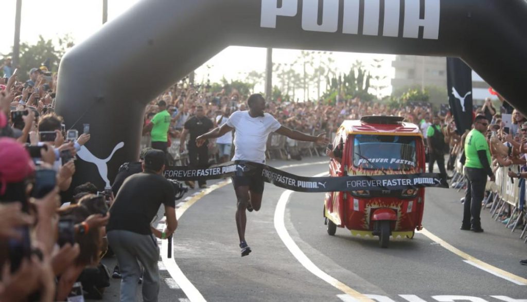 Se trató de una carrera muy corta. El tramo marcado ni siquiera alcanzó los 100 metros, pero sirvió para que el atleta jamaiquino muestre a los peruanos por qué se trata del hombre más rápido del mundo. Pasó sin mucho esfuerzo desde la línea de partida hasta la meta. Y el vehículo quedó atrás.