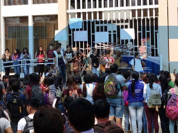 Los alumnos criticaron al vicerrector Ewer Portocarrero por dedicarse a su campaña política. “Lo elegimos para que nos represente, si va a dedicarse a su campaña entonces que deje la universidad”, le emplazó un dirigente.