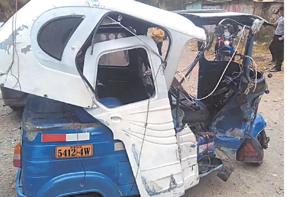 Un vehículo automóvil de placa de rodaje ANL-300, conducido por Emerson Chipana Chungui (26) colisionó violentamente contra un vehículo trimovil azul de placa 5412-4W, de la empresa de transportes Ecológico, conducido por  Segundo Cruz Goñe (28).