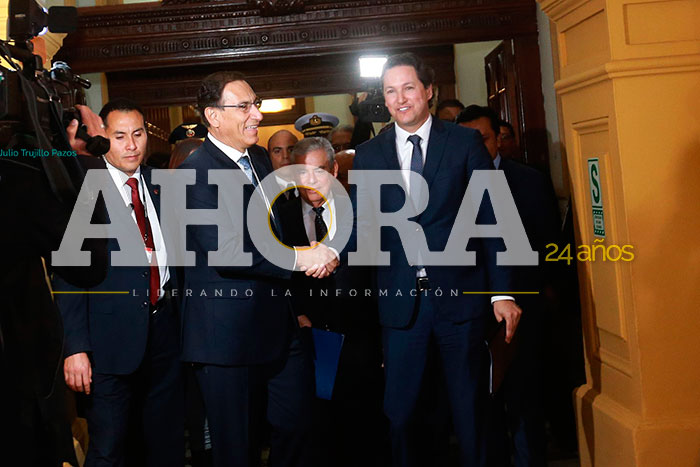 El Presidente de la República, Martín Vizcarra, recibió al titular del Parlamento, Daniel Salaverry, en Palacio de Gobierno.
