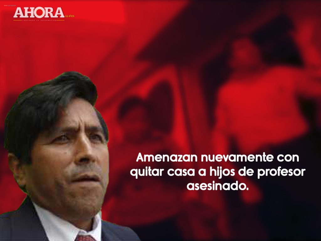 Los abuelos y hermanos del profesor Eusebio Tadeo Falcón, asesinado el 23 de marzo del año pasado en su vivienda del jr. Los Olivos n.° 224, en Cayhuayna, distrito de Pillco Marca, Amenazan nuevamente con quitarle la vivienda a los hijos de la víctima al extremo que el día de ayer contrataron un cerrajero para ingresar a la fuerza a la primera planta de su propiedad. Así lo expresó Khiria Tadeo Ramos, hija del fallecido docente.